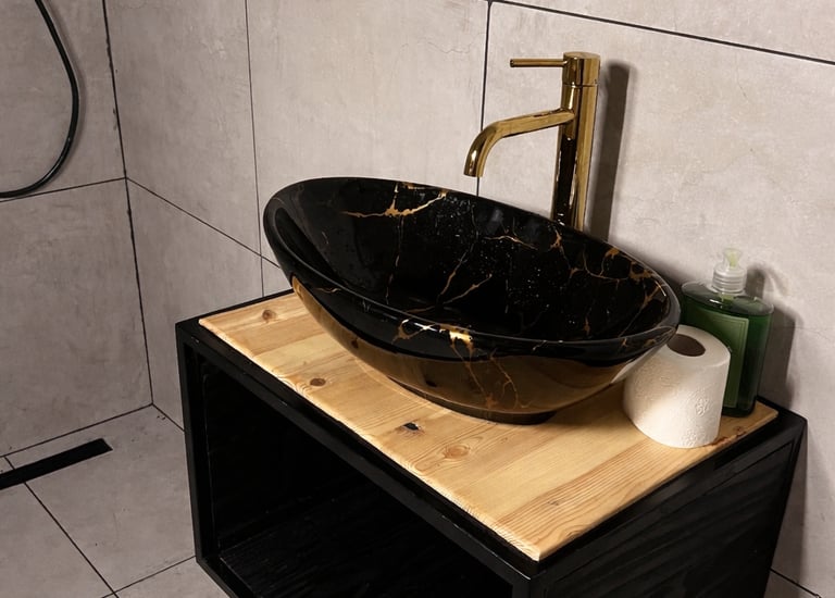 Umywalka nad blatowa wykonana ze stali czarnej oraz drewna. Tworzymy formy i konstrukcje według indywidualnych potrzeb.